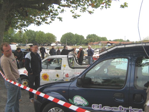 y avait même un Cheick, ex roi du pétrol ruiné par les VE :-) Jean-Pierre Texier est le grand vainqueur (à gauche) La plus basse consommation sur le parcours La Teste de Bush Place de Tourny. Son expérience de spécialiste de la batterie de traction est largement reconnu. Il a eu la chance de tester du temps ou elle existait légalement "droit d'existence si j'ose dire", la fameuse batterie de traction Nimh sur 10.000 km sur une Clio électrique transformée (replacement batterie Nicd par une Nimh) C'est clair, c'est bien de la teste de Bush que les difficultés ont commencées. |